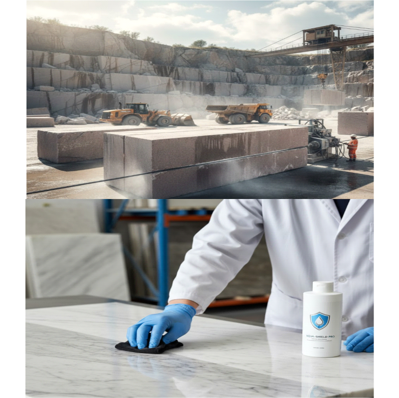 Chemicals for marble/granite from quarry processing to final treatment